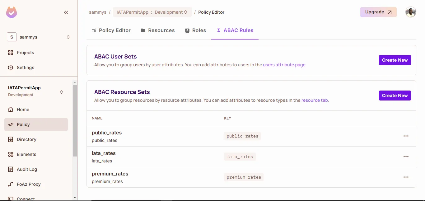 FinancialAdviceorFinancialData— these are directly referenced in policy rules. - You can set these up via Policy → ABAC → Resource Sets.